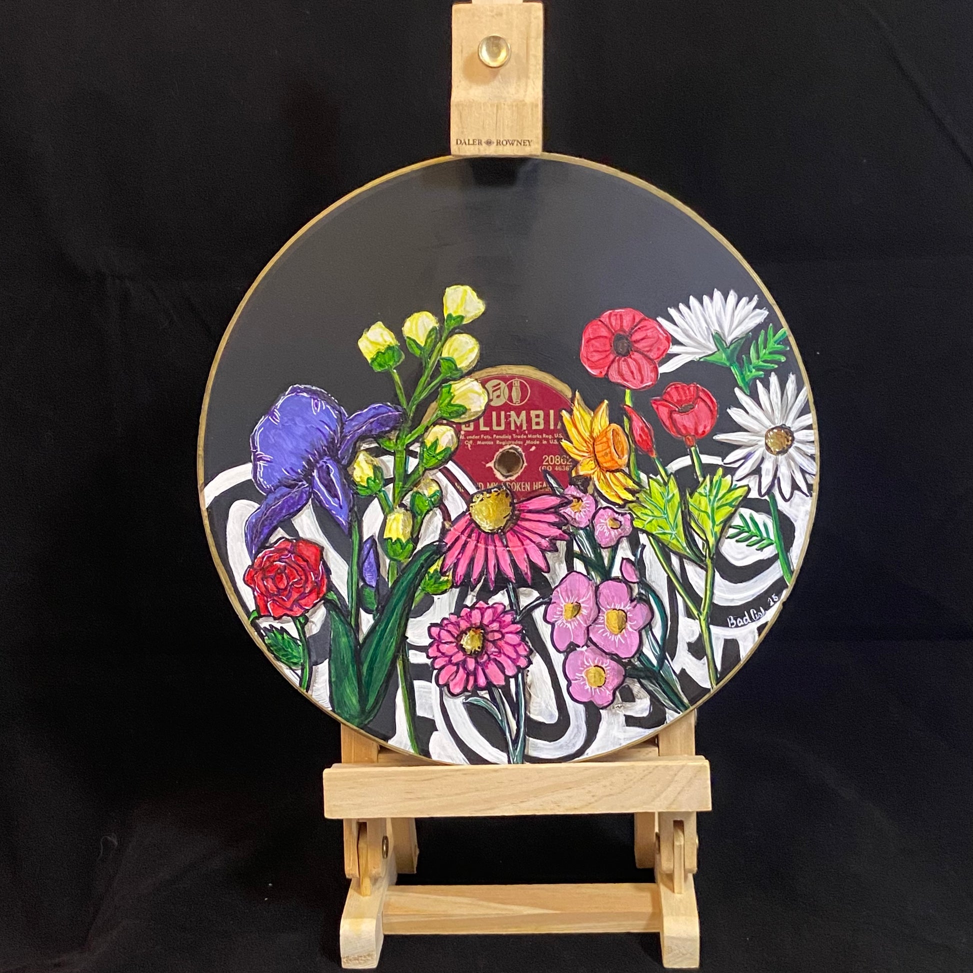 A very old vinyl record, repurposed into a whimsical piece of art for your collection. Hand painted by BadAsh. Comes with a certificate of authenticity on the back.