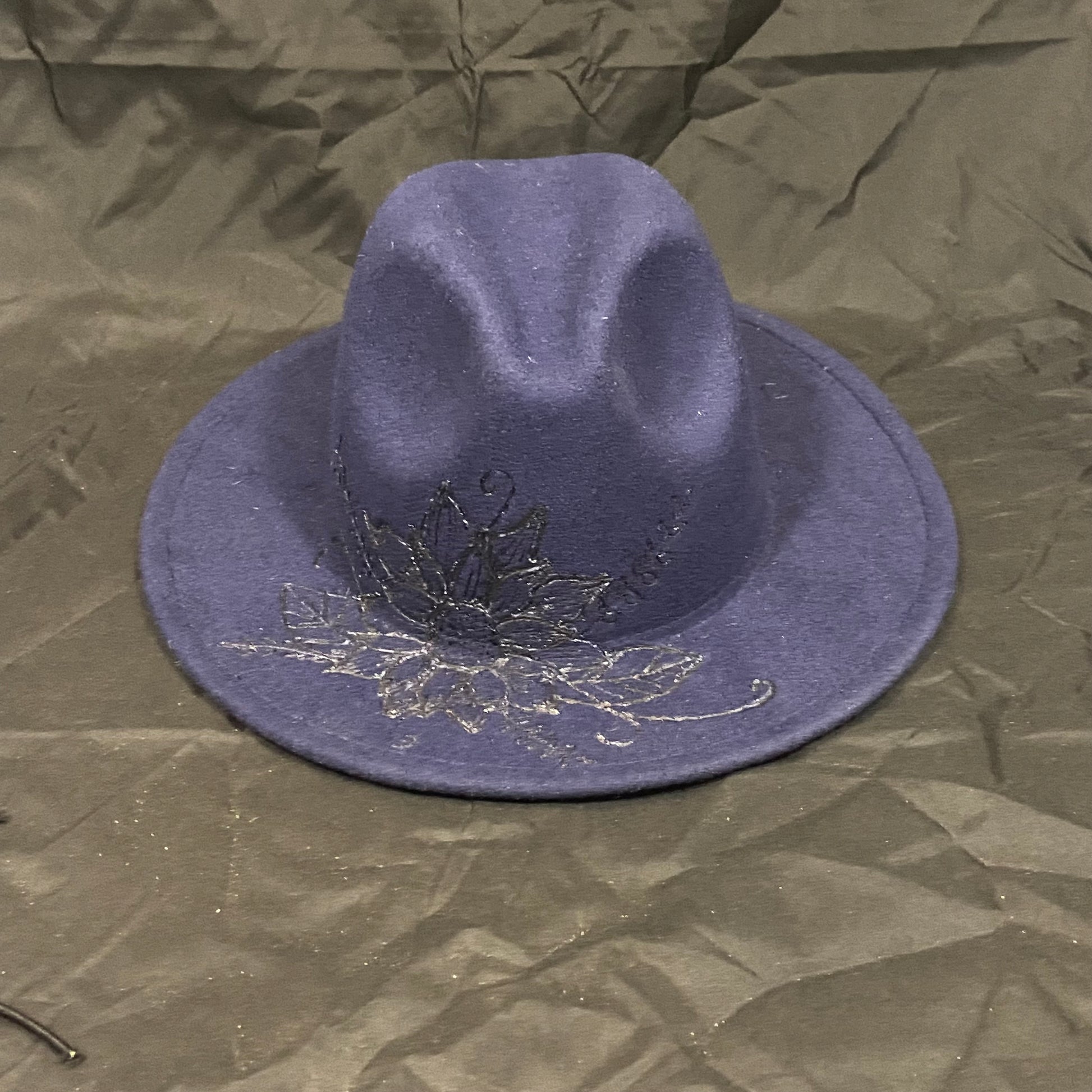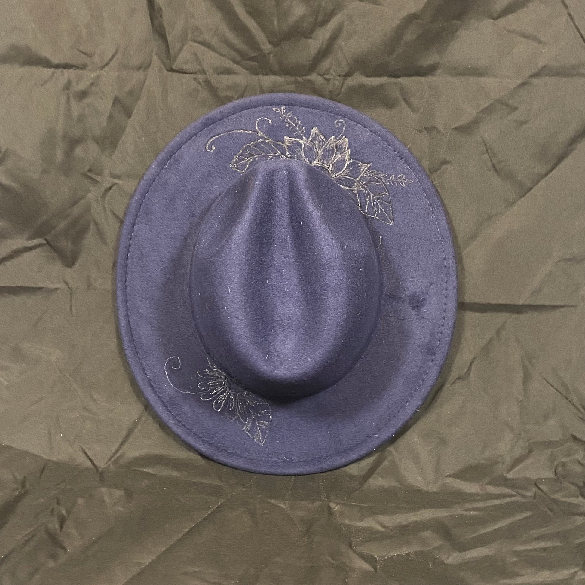 One Size fits MOST women. appr 14.17" x 12.99" and has a size adjustment ribbon. Comes with the band pictured , a plain black band and feather also included